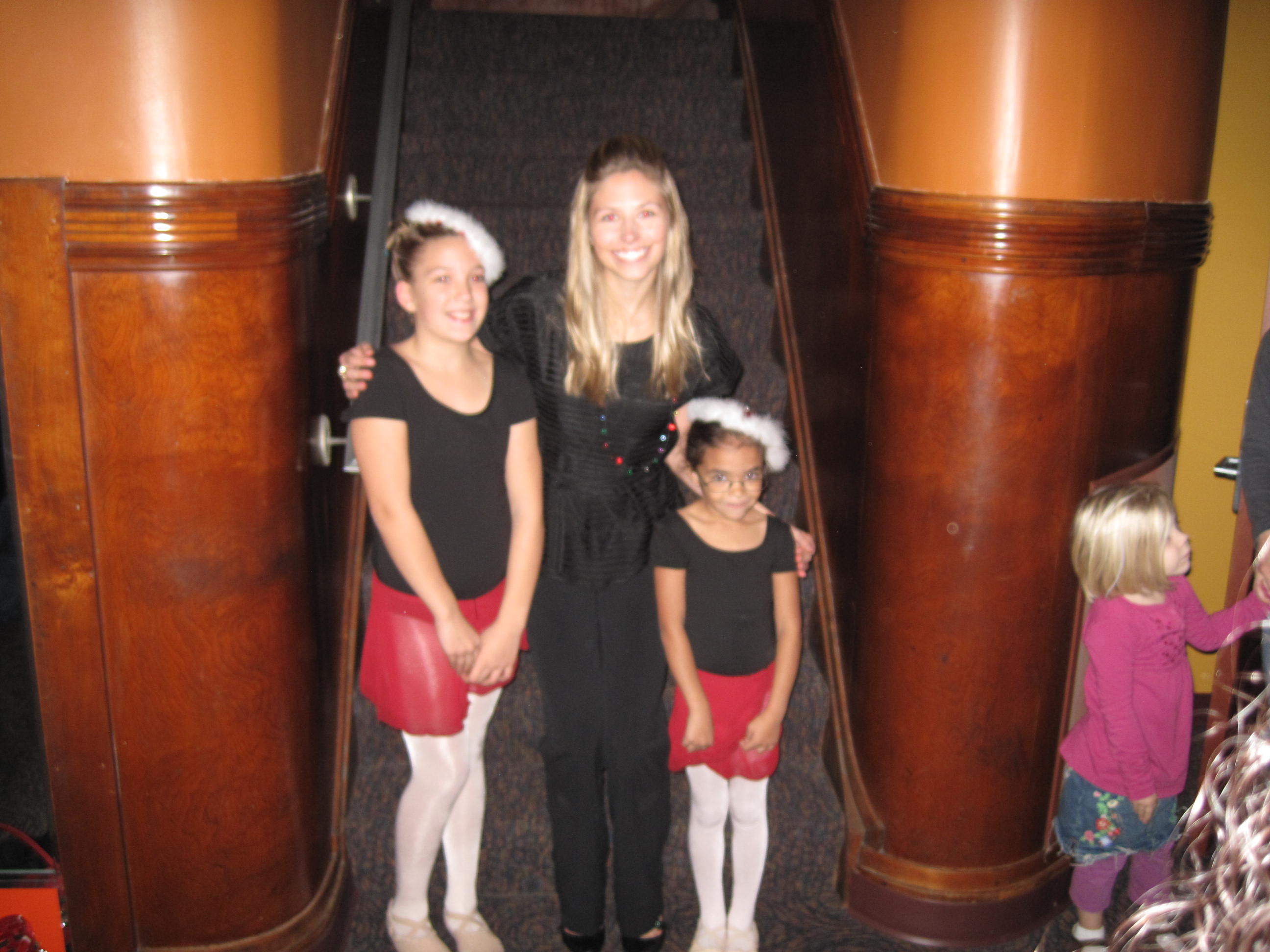 We had such a good time preparing and performing at this holiday event. Miss Christine handmade the teardrop Rockette hats. And the class was happy to be able to practice in the studio moments before walking across the street and performing on stage for an audience. It was an exciting opportunity for everyone to perform in the beautiful, recently renovated auditorium. Thanks Campus Theatre!